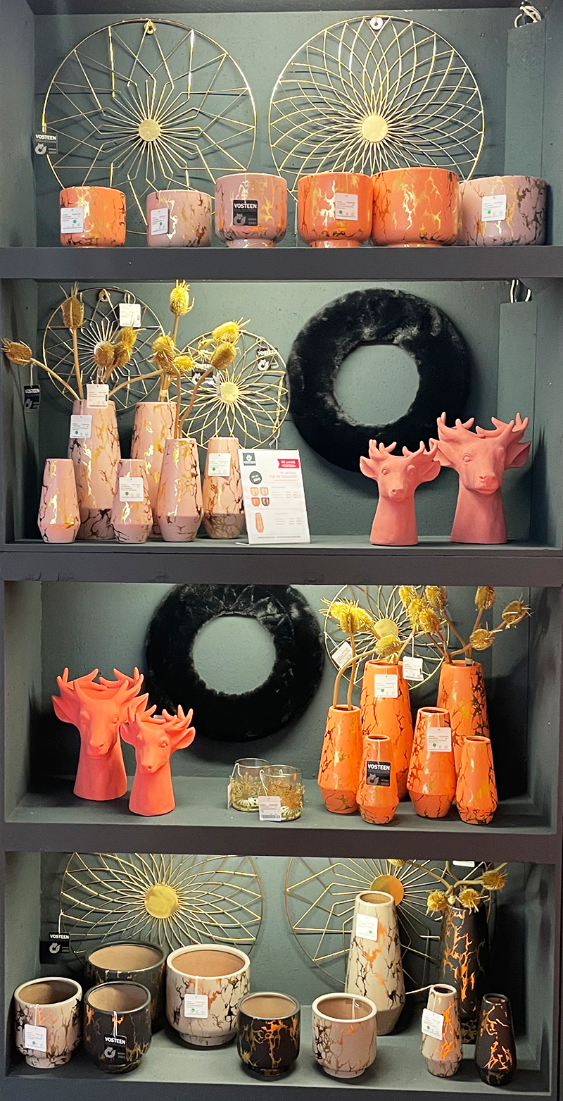 Our aim at Trendset Munich 2023 was to inspire visitors with innovative ideas and unique designs. Our stand in Hall A1 became a place of inspiration and invited visitors to immerse themselves in the magical world of floristry. From stylish vases and plant pots to artistic flower arrangements and seasonal decorations. Autumnal hues such as warm red and green, as well as bright orange and neon yellow took center stage – we presented a wide, colorful range of high-quality lifestyle and florist supplies for the autumn and winter 2023 season.
